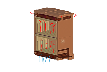 Izgaralı kovan tabanı ve yemliğin etrafındaki havalandırma delikleri sayesinde, gelen havanın arı salkımı seviyesine ulaşmadan önce kovan havası ile karışarak sıcaklığının yükselmesi için yeterli süre sağlanır. Bu, tüm yıl boyunca cereyansız havalandırma sağlar ve arıların kovan içinde optimum nem, sıcaklık ve karbondioksit seviyelerini korumalarına yardım eder.